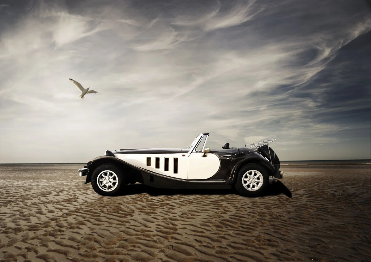 These classic cars were shot on the South East coast against windswept skies at low tide. One has to make the most of daylight by shooting at certain times of day. Positioning the cars and removing tyre tracks from the sand always presents something of a logistical challenge.
