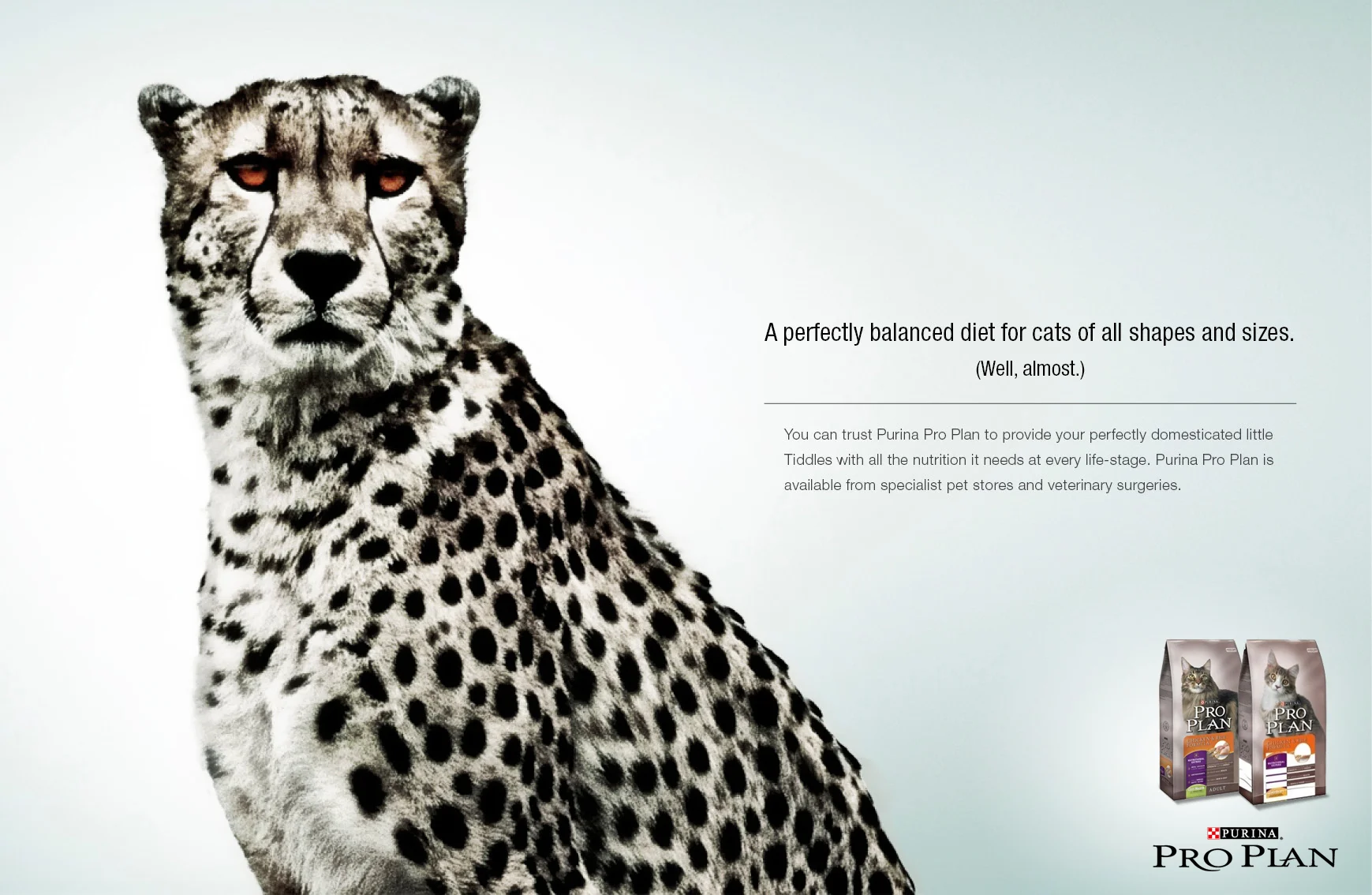 Purina is a premium brand of pet food that caters for pretty much every kind of cat. So this is the simple fact I wanted this ad to convey in the most eye-catching way.
