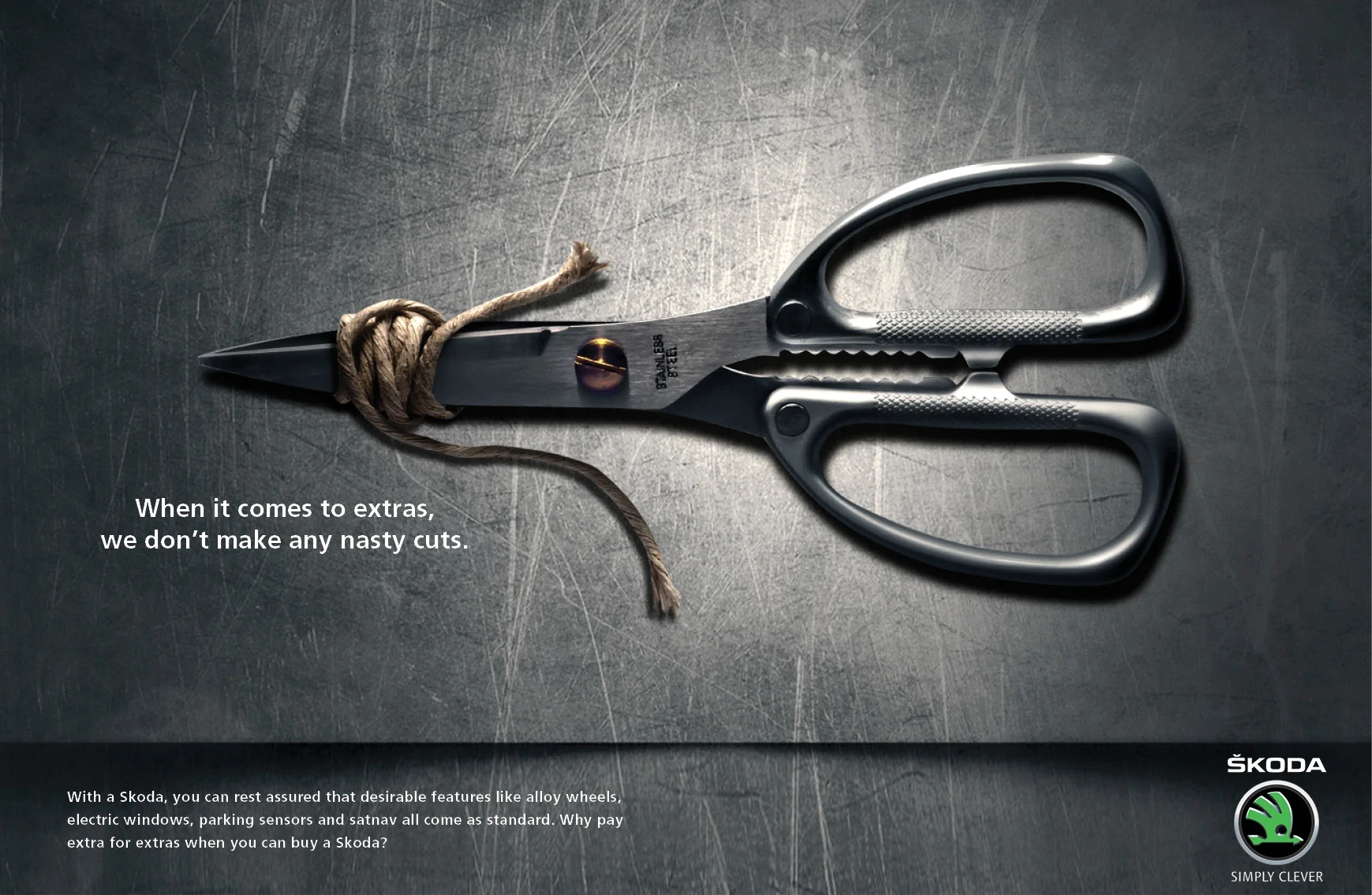 To convey the competitive positioning and the uncompromising standards of Skoda, I wanted to create an image that reflected this. So the scissors had to look like a precision tool that had itself been highly engineered. This pair looked the part, particularly when set on a distressed, industrial, metal surface. Getting the lighting right wasn’t easy but the result is exactly what I was aiming for: simple, clean and precise.